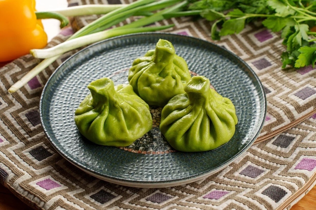 Закрытый хачапури с миксом сыров (сулугуни, имеретинский) и миксом зелени (укроп, петрушка, кинза, зелёный лук).